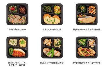 ハンバーグデミグラスソース、鯖のみぞれ煮、生姜焼き、チキンと彩り野菜のクリームシチュー、麻婆豆腐、油淋鶏、鰤の照焼き、豚肉のオイスターソース炒め、鶏肉のカレーソースがけ、白身魚の中華あんかけ