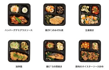 トマトと味噌の煮込み風ハンバーグ、鯖の味噌煮、八宝菜、豚肉とごぼうの柳川風、牛肉と野菜のおろしがけ、鰆の甘酢あんかけ、鶏肉の香味ねぎソース、鯖のごま照焼き、生揚げのきのこあんかけ、鰤大根
